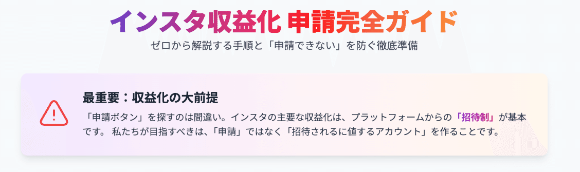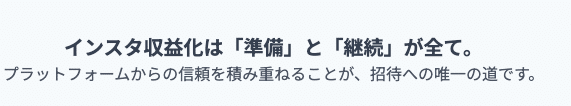 収益化の申請は、実はゴールではなく、インスタグラムというプラットフォームから「信頼できるパートナー」として認められるためのスタートラインに過ぎません。
