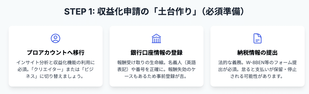 収益化申請の「土台作り」:今すぐ確認すべき準備タスク