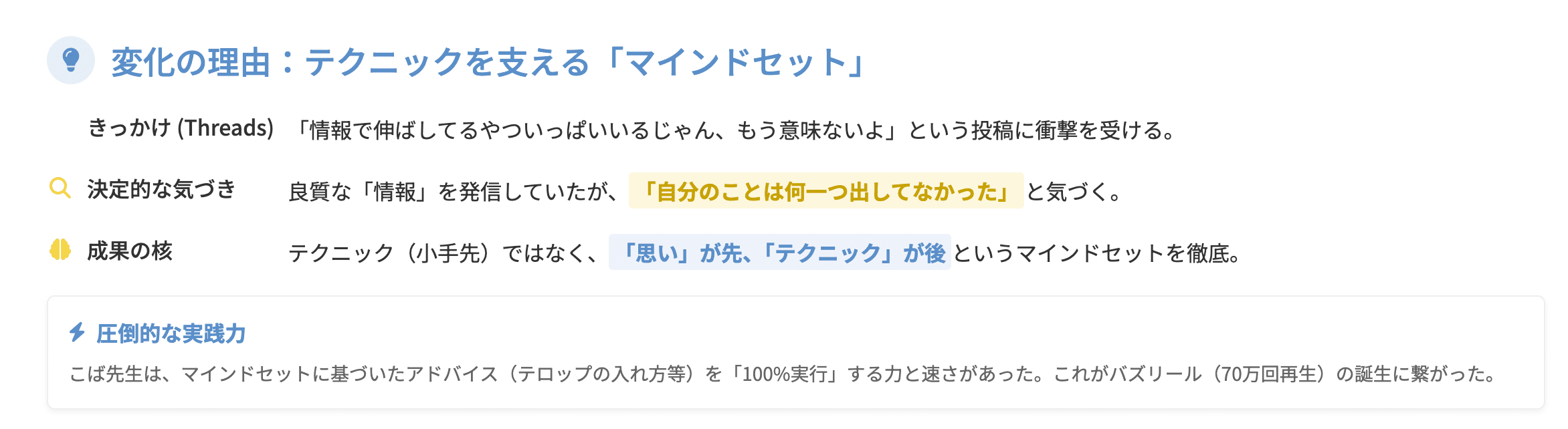 劇的変化の理由:テクニックを支える「マインドセット」の徹底