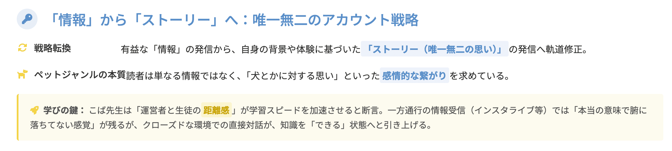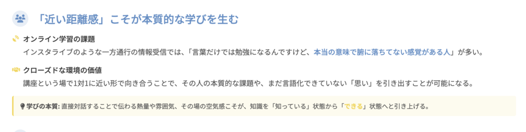 こば先生は、講座で学んだ最も重要なポイントについて、次のように語ってくれました。