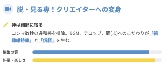 動画と動画のつなぎ目、BGMの音量バランス、テロップのタイミングなど、素人は気にも留めない細部にこそ、プロの仕事が宿ります。