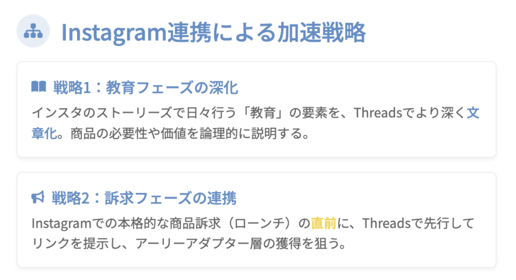ここで注意点なのですが、あまりにも日々のインスタでの発信とThreads(スレッズ)での発信内容を変えすぎてしまうと反応率が下がってしまうという危険性が あります。
